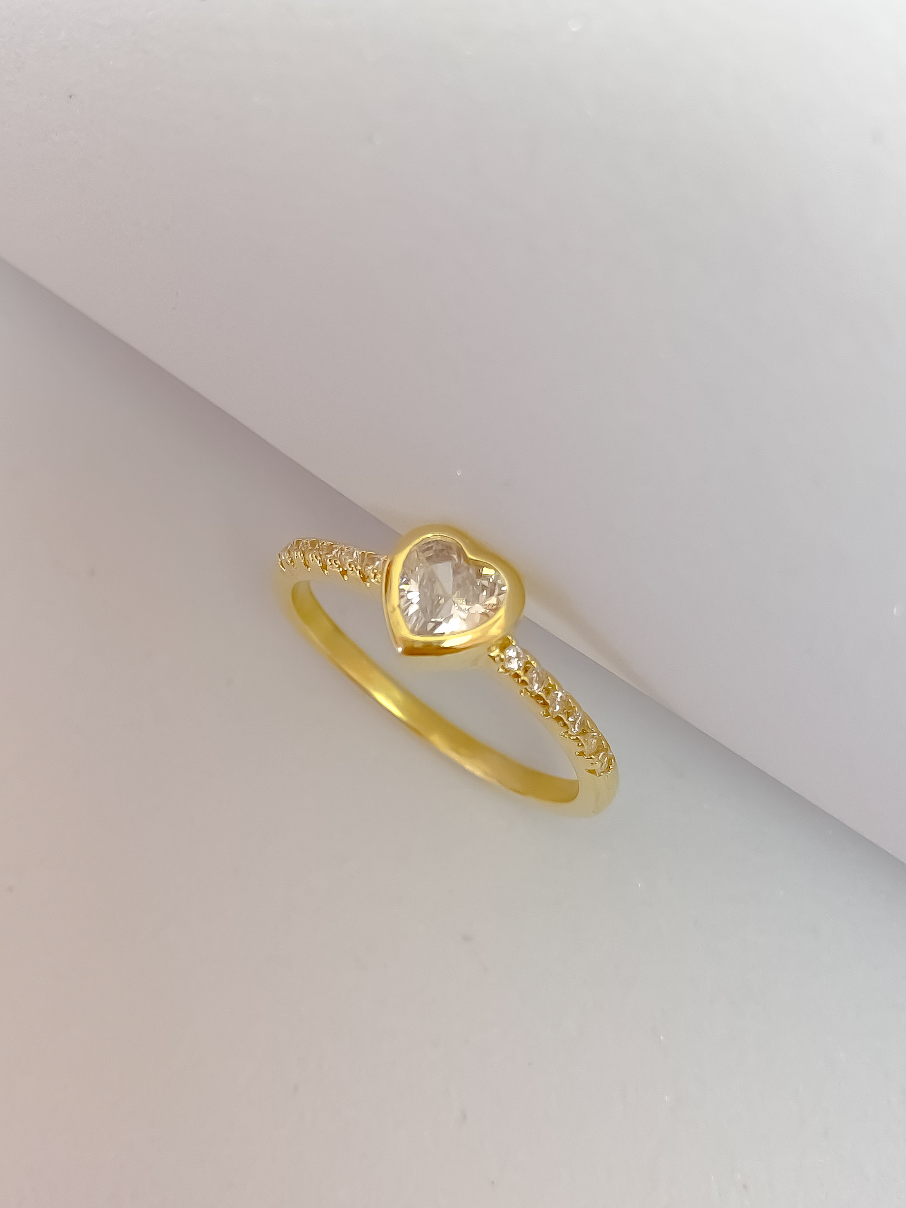 Anel solitário coração cravejado