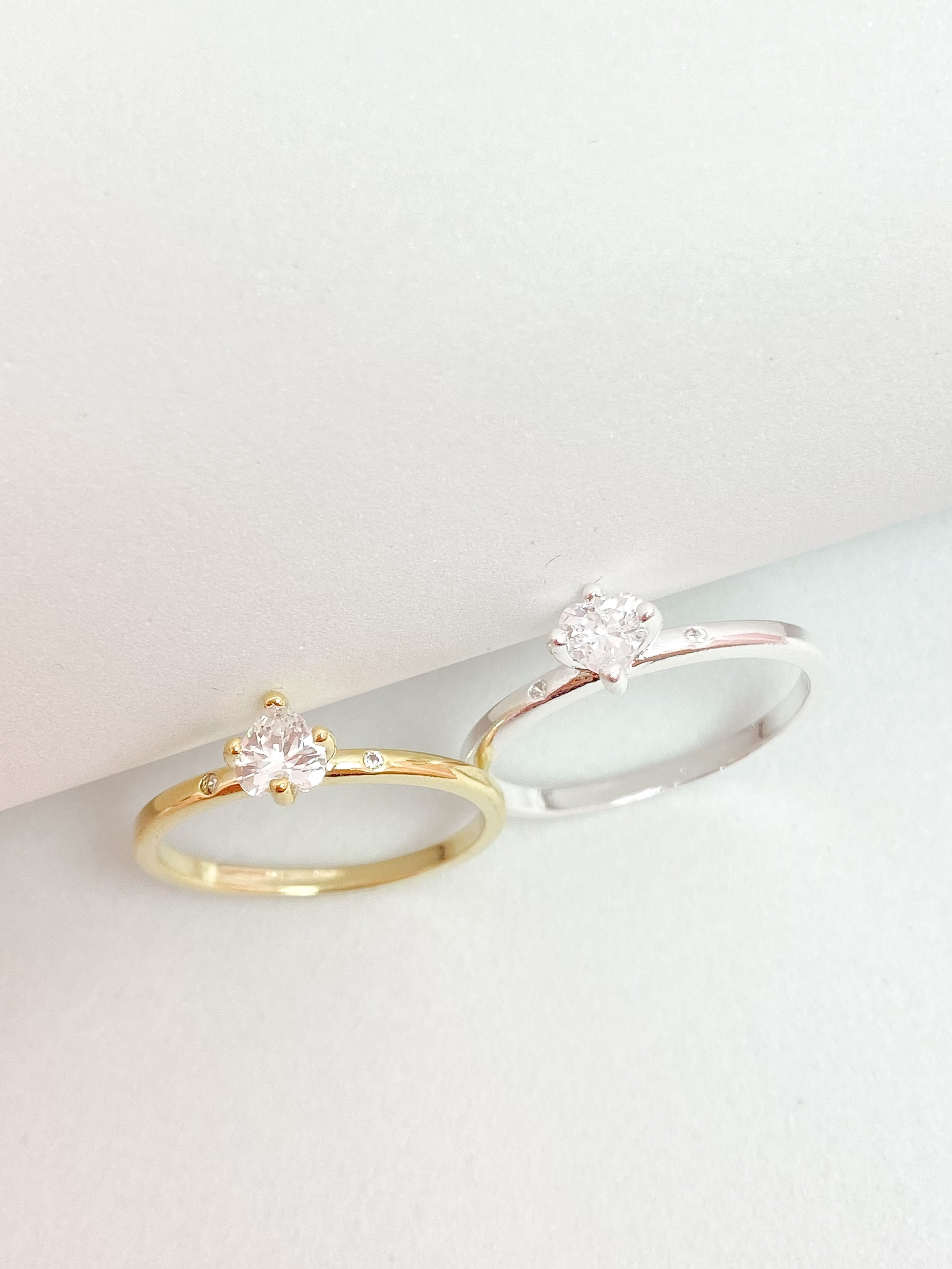 Anel solitário coração cristal