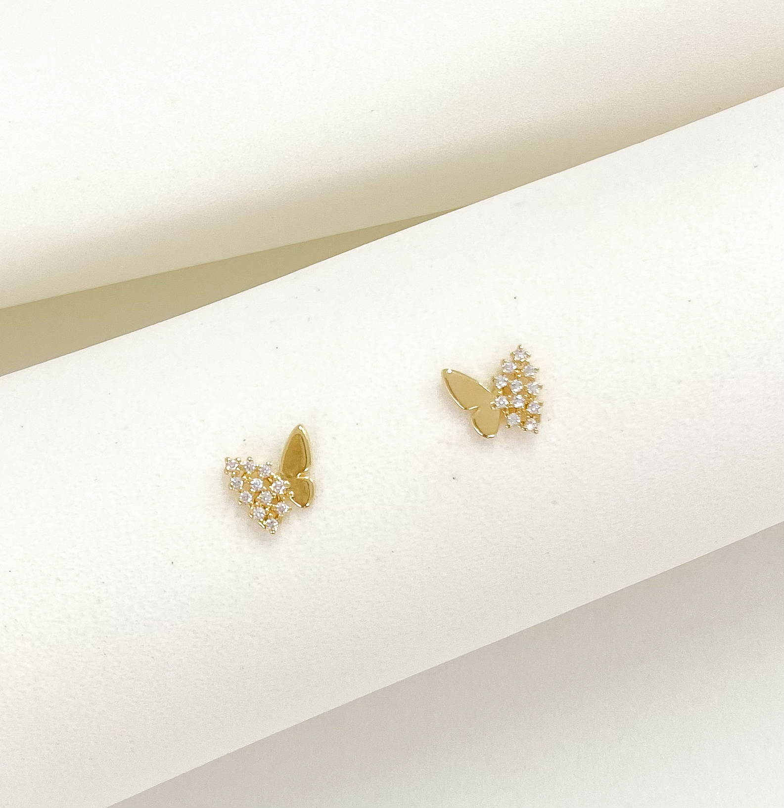 Brinco borboleta liso e cravejado