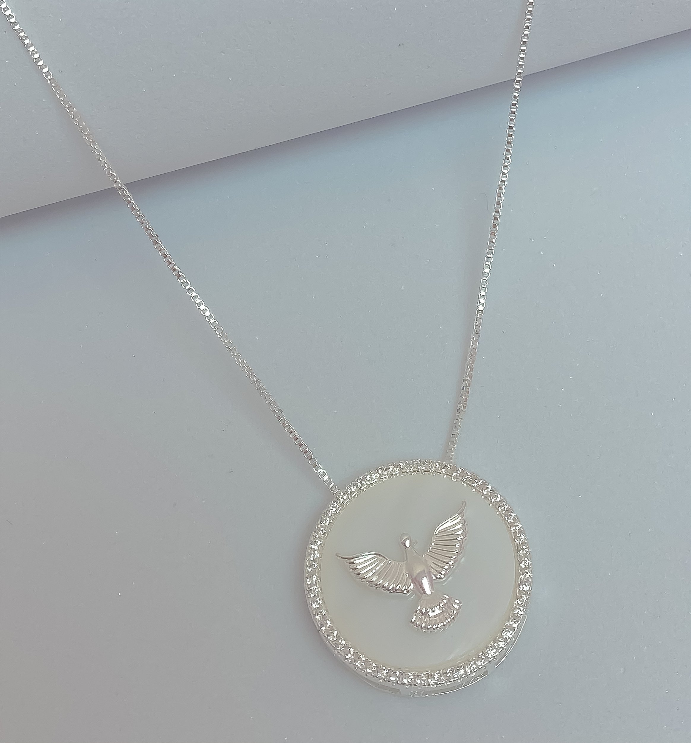 Colar medalha Espírito Santo madre pérola