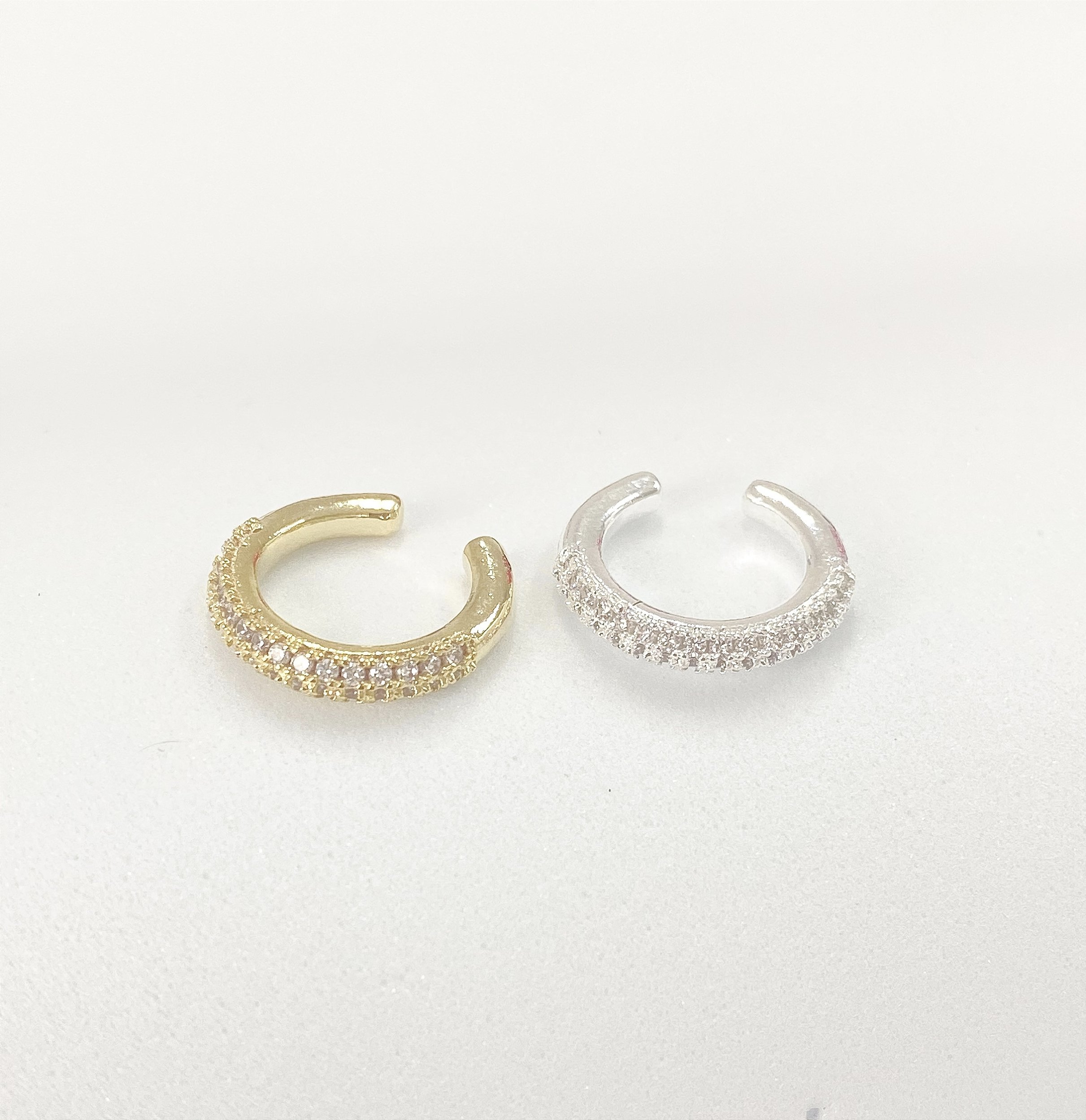Piercing fake cravejado com zircônias cristais, ajustável, nos banhos prata e ouro hipoalergênicos.