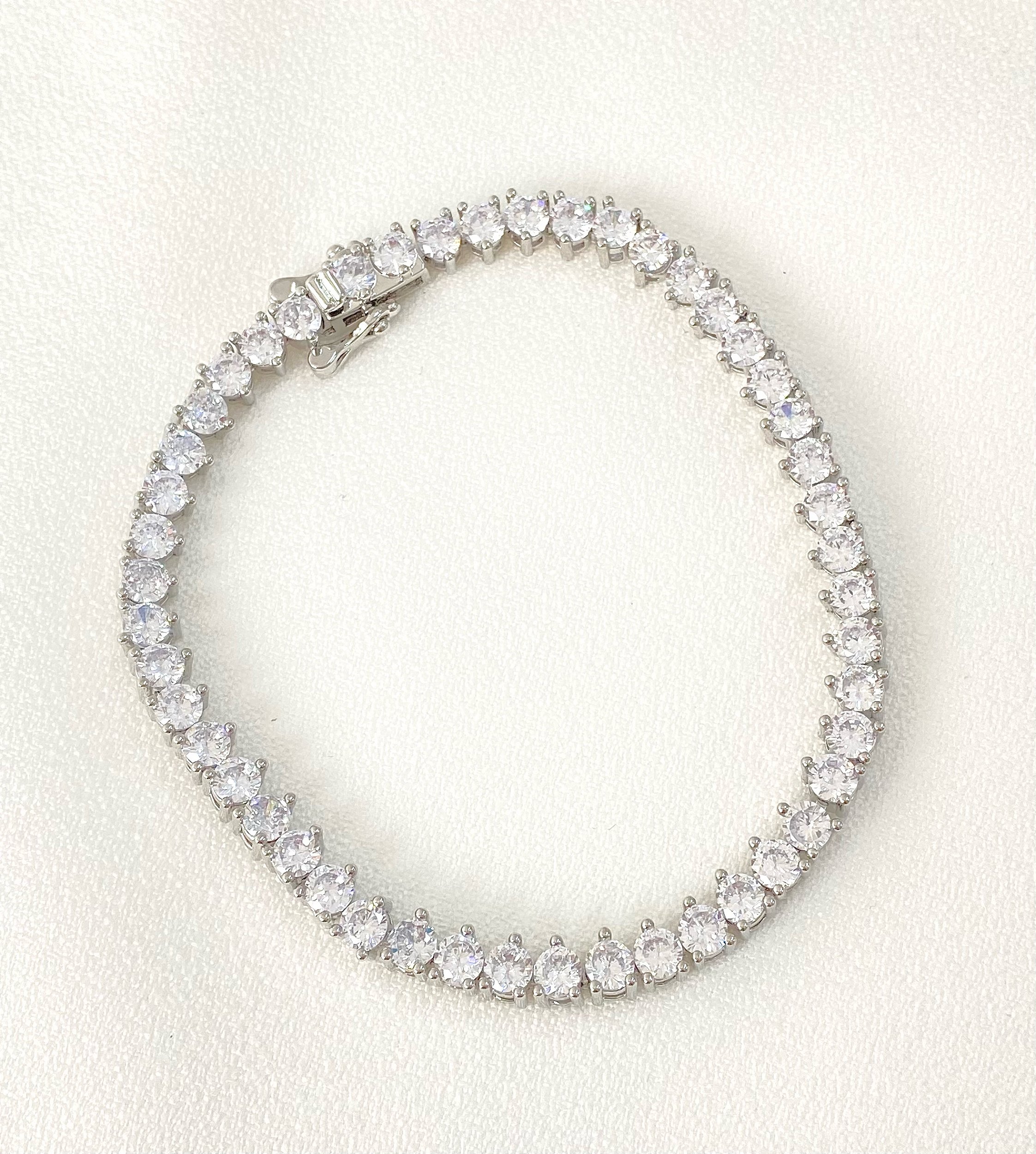 Pulseira riviera 3 pontas cristal, pedra 3mm, no banho de ródio branco. 18cm. Fecho gaveta. Peça luxuosa.