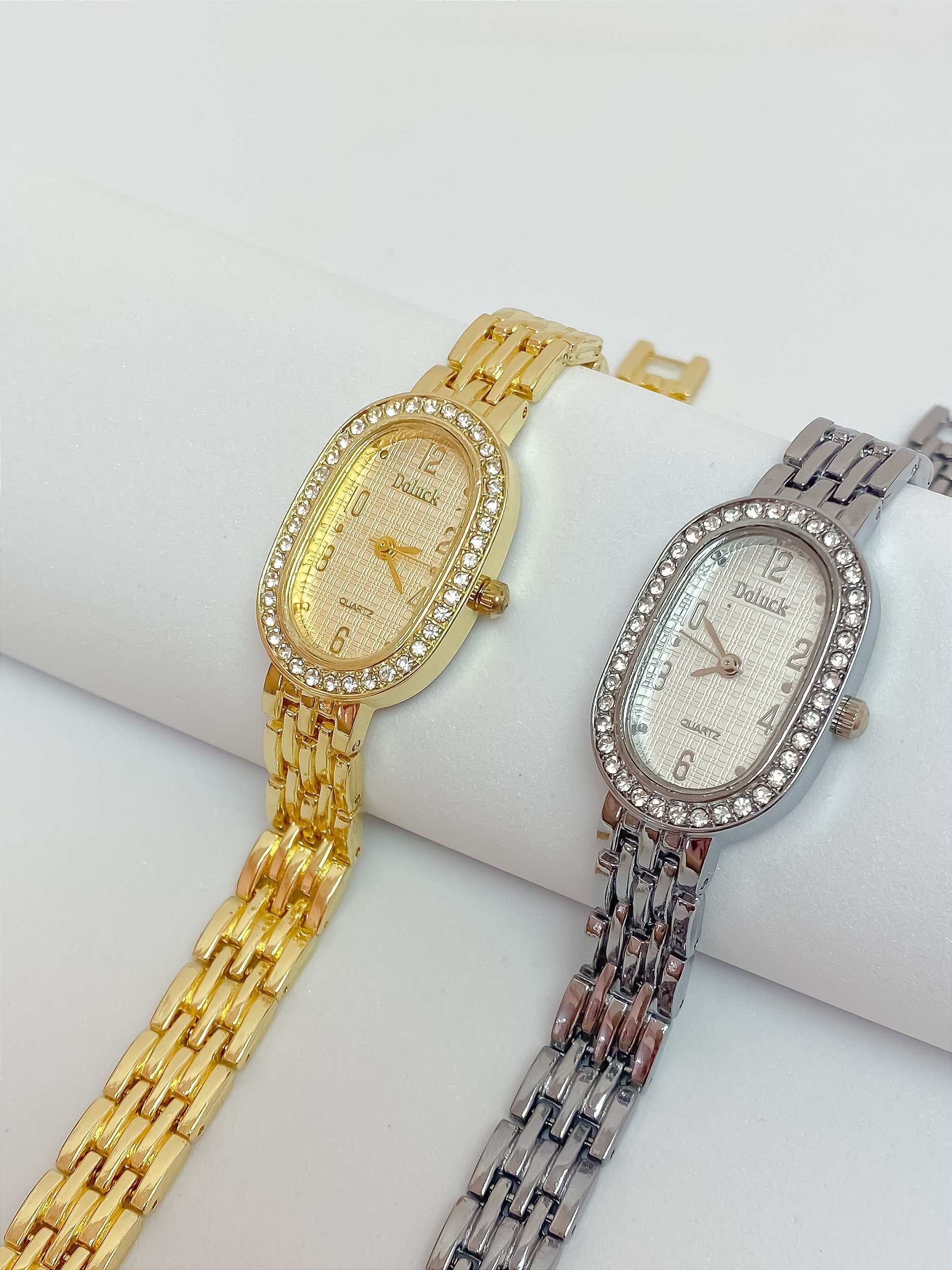 Relógio oval cravejado